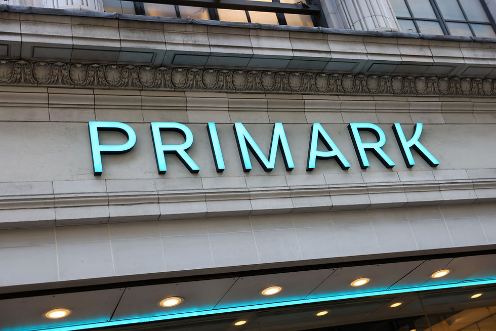 The Primark sign is displayed on the outside of the clothing store on Oxford Street in London, Britain, April 19, 2026.