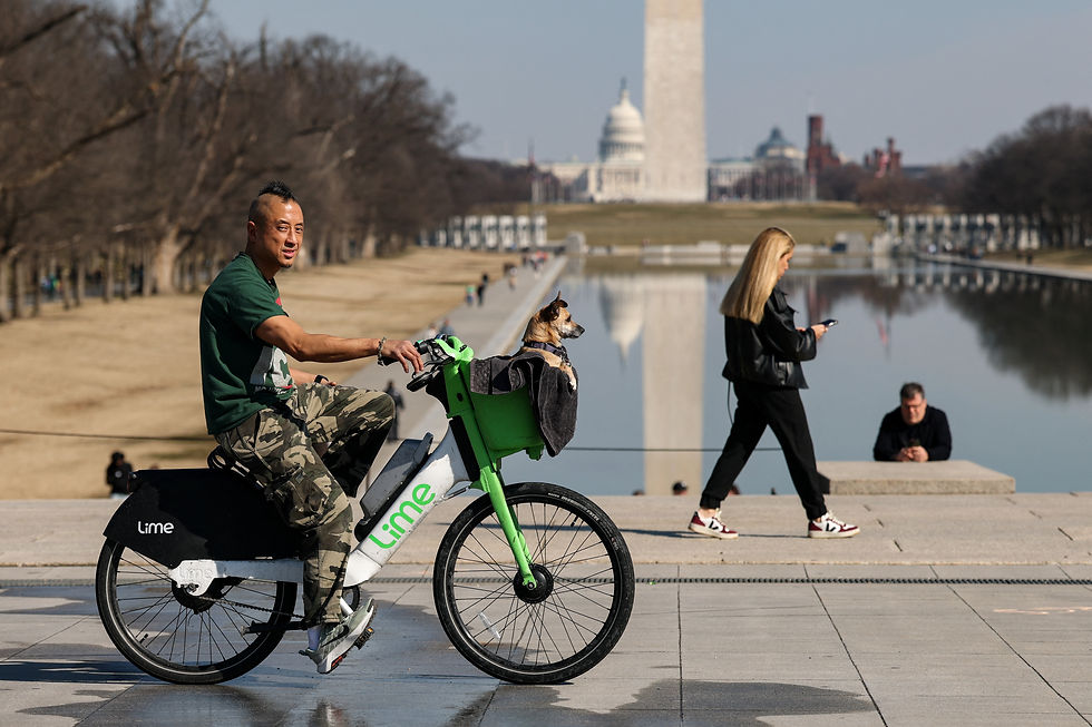A man cycles along with his dog at the National Mall in Washington, D.C., U.S., February 27, 2026.