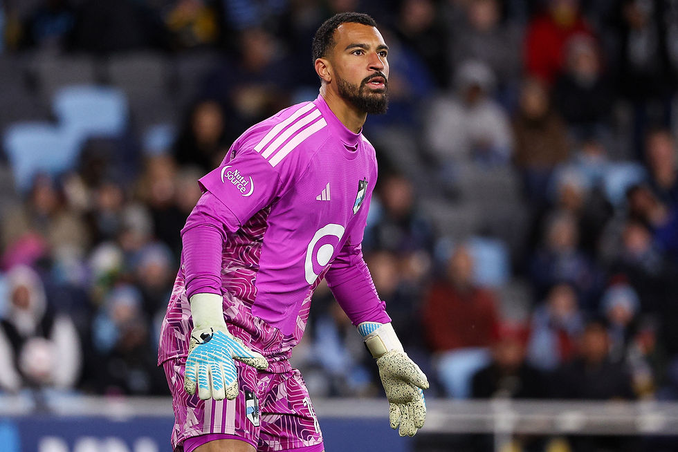 Minnesota United FC goalkeeper Drake Callender (12) defends his net against the Portland Timbers during the second half at Allianz Field, Saint Paul, Minnesota, USA, April 18, 2026.